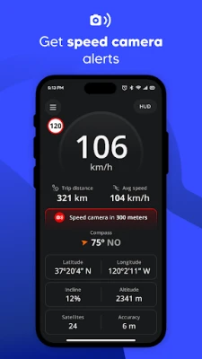 Karta Cockpit 集成了多项智能功能,让您掌控全局。借助实时速度表,您的当前车速一目了然;配合智能限速信息提示,确保您始终遵守交通规则。独有的雷达预警系统能即时提醒您注意测速摄像头、闯红灯摄像头及其他雷达区域,防患于未然。此外,它还能详细记录您的旅程数据,包括行驶距离、用时及平均速度,并通过直观的指南针功能助您保持正确方向。深入的 GPS 分析工具则能精确显示海拔、坡度、卫星连接数和定位精度,让您对行驶环境了如指掌。
