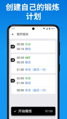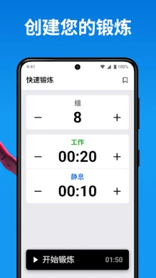 为了保持您在训练中的高度专注和充沛动力,`Interval Timer` 融合了多项人性化设计。每个训练阶段不仅能以独特的色彩区分,还能配合可自定义的提示音、震动或语音指导启动,让您无需频繁查看手机也能掌握节奏。每一次成功的完成都将成为您挑战更高目标的动力源泉。此外,您可以自由播放喜爱的音乐或引人入胜的有声读物,在节拍或故事中汲取能量。醒目的大数字全屏显示确保您在远处也能一目了然,而便捷的小组件则让您在不解锁屏幕的情况下也能轻松管理训练,避免任何不必要的干扰,沉浸于高效的运动体验。